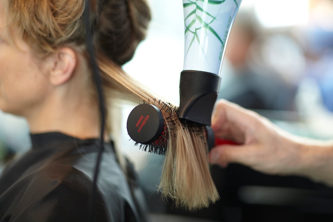 Styling: Zum Abschluss erfolgt das Styling des glattierten Haares. Der Friseur kann es je nach Wunsch des Kunden schneiden, föhnen oder stylen.